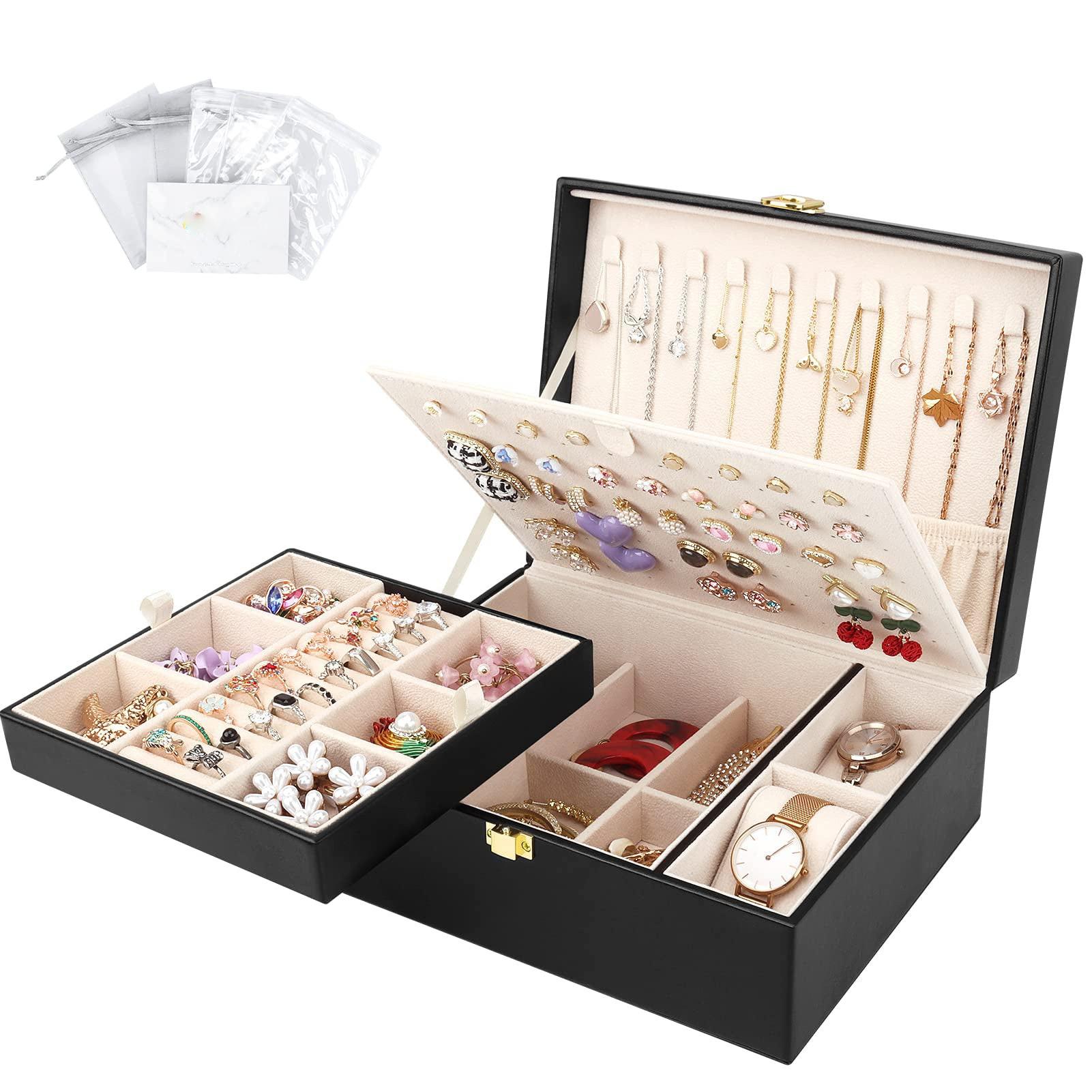 Only-bags.store Boîte à bijoux pour colliers, boucles d'oreilles, bracelets, bagues, montres, avec couvercle amovible.