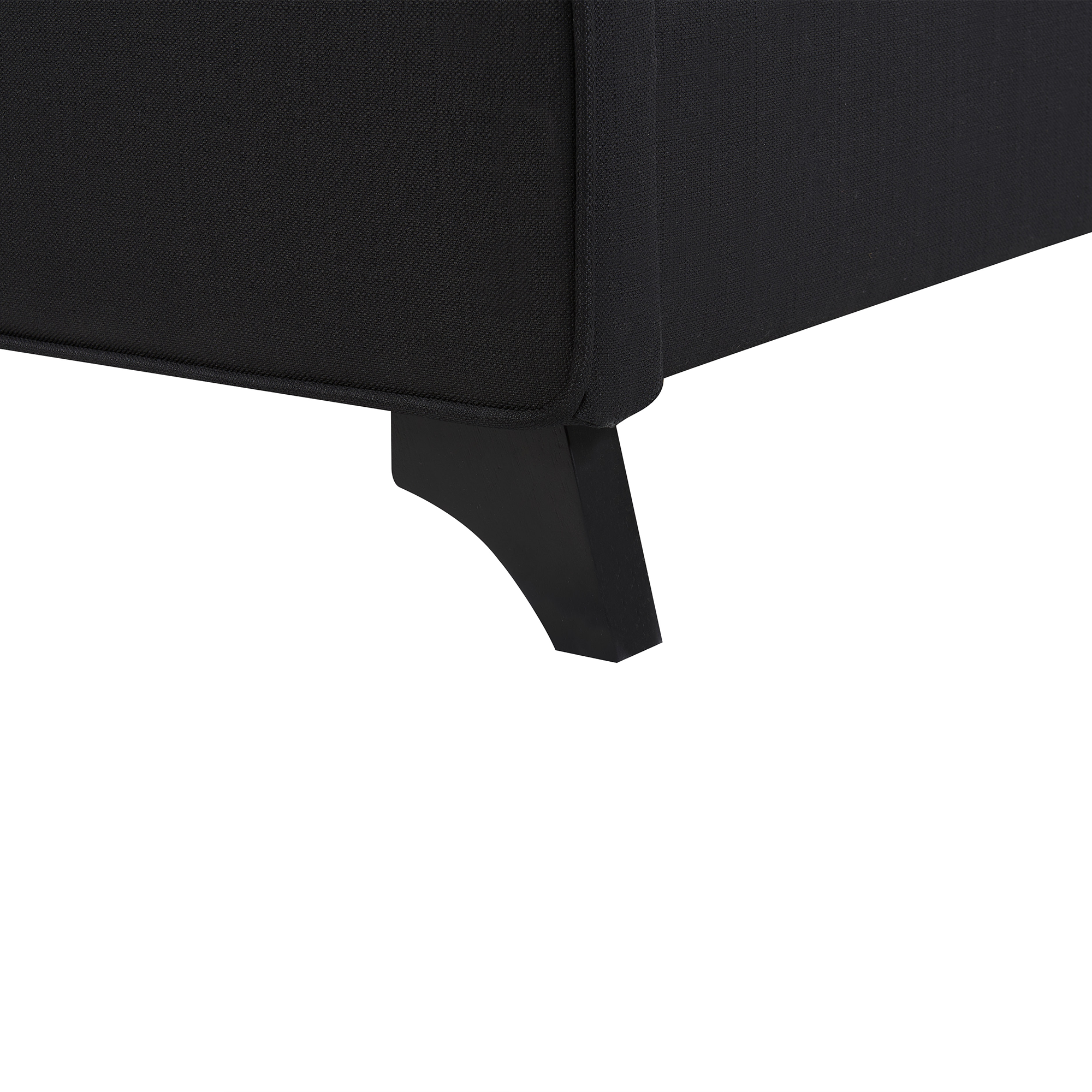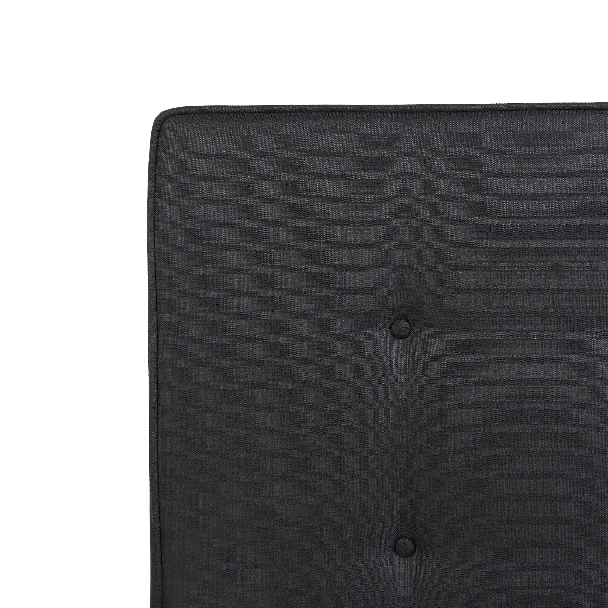 Llit 180 x 200 cm noir au style intemporel. Inspiré du design scandinave, ce lit élégant complète à la fois les décors au style traditionnel et moderne. La structure et l'appui-tête sont recouverts d'un tissu chenille résistant aux taches, d'excellente qualité et extrêmement robuste. Ce dernier est capitonné de boutons en tissu, ce qui ajoute une touche supplémentaire et sophistiquée au lit. La structure et les pieds en bois d'hévéa garantissent des conditions de sommeil stables et confortables.