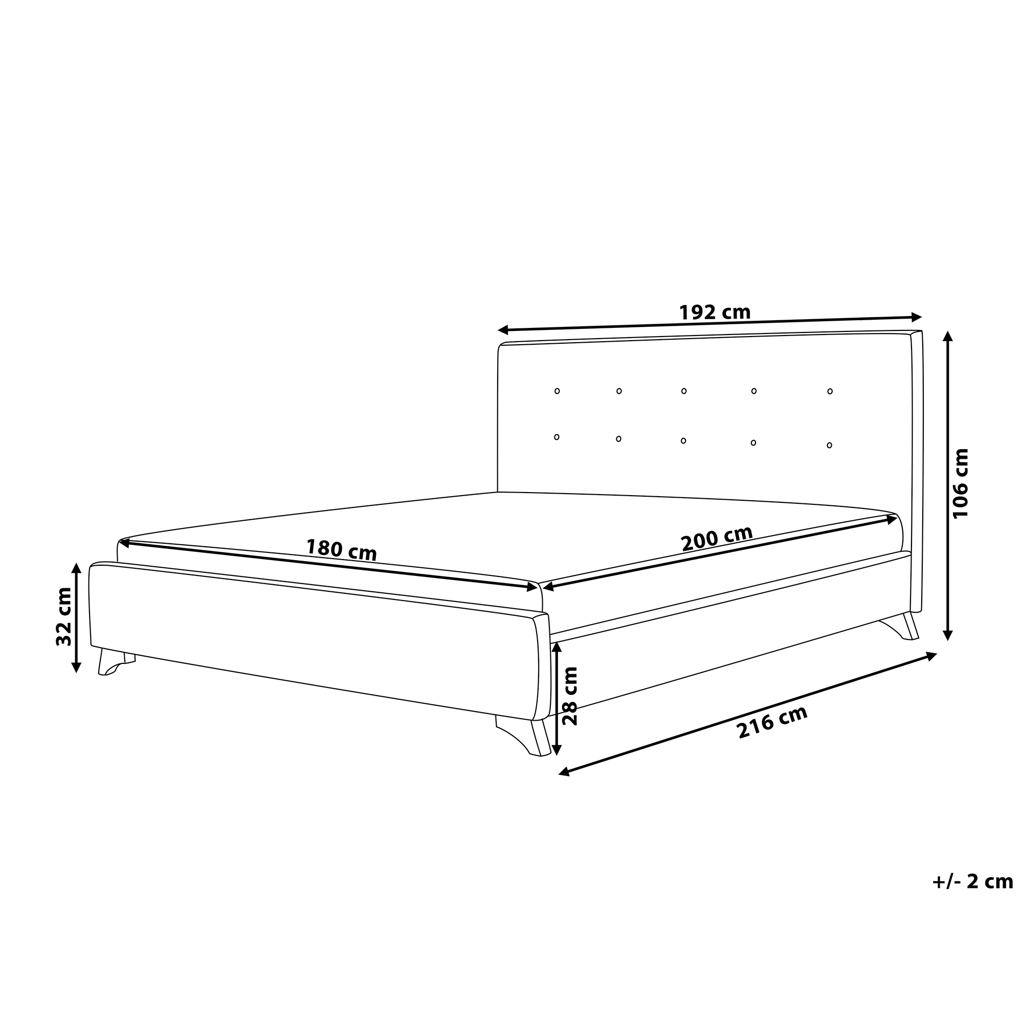 Dimensions de lappuie-tête:</b> 192x96<br> <b>Largeur:</b> 192 cm<br> <b>Longueur:</b> 216 cm<br> <b>Hauteur:</b> 106 cm<br> <b>Surface de couchage:</b> 180x200 cm<br> <b>Poids:</b> 39 kg<br> <b>Charge admise:</b> 350 kg<br> <br><b>Loffre inclue: 1 x Cadre de lit, 1 x Sommier (14 lattes plates), Non inclus : matelas et parure de lit