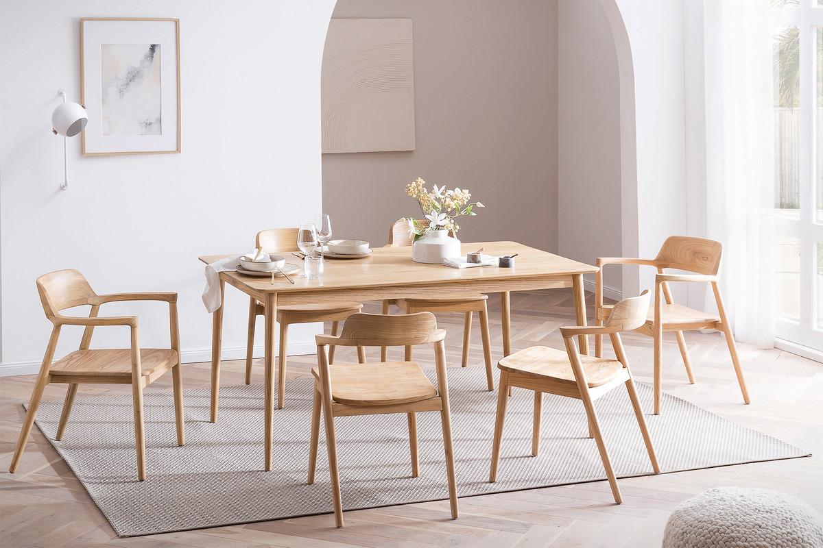 Bois naturel de Sungkaï aux veines impressionnantes Design scandinave intemporel Empilable pour un rangement facile Idéal pour la salle à manger et les espaces de vie Pieds en bois robustes garantissant la stabilité Hauteur d'assise de 46 cm pour un confort optimal Dimensions : L 60 cm x P 50 cm x H 78 cm