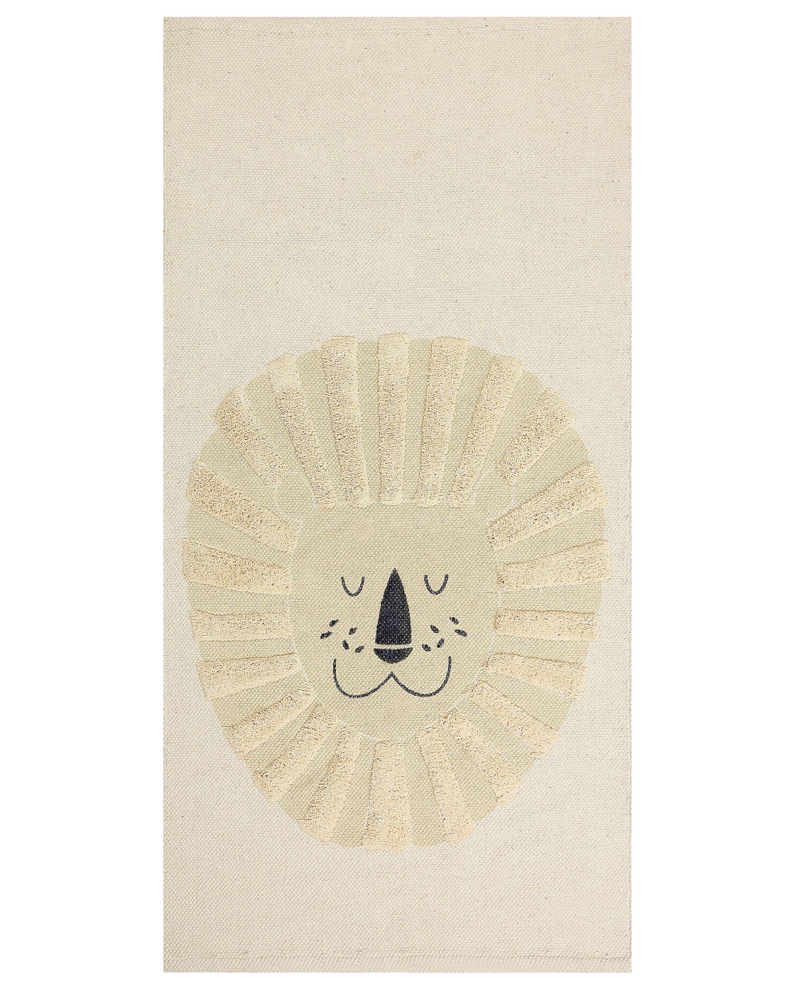 Tapis décoratif pour enfant avec motif de lion. Transformez la chambre de votre enfant en un royaume sauvage et enchanteur grâce à ce superbe tapis. De couleur neutre avec un lion brodé, il conviendra aussi bien aux filles qu'aux garçons, du style bohème aux intérieurs modernes. Il a été fabriqué à la main, ce qui en fait un accessoire accrocheur qui durera de nombreuses années. Ce produit ajoutera une touche cosy à l'intérieur, et servira également de lieu pour les jeux et autres activités. De plus, il est sûr à l'utilisation grâce au dos antidérapant qui empêche le produit de glisser.