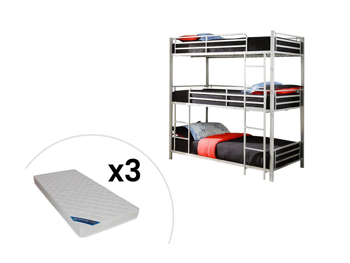 Vente-unique Lits superposés triple 3Métal + matelas ELOUAN III