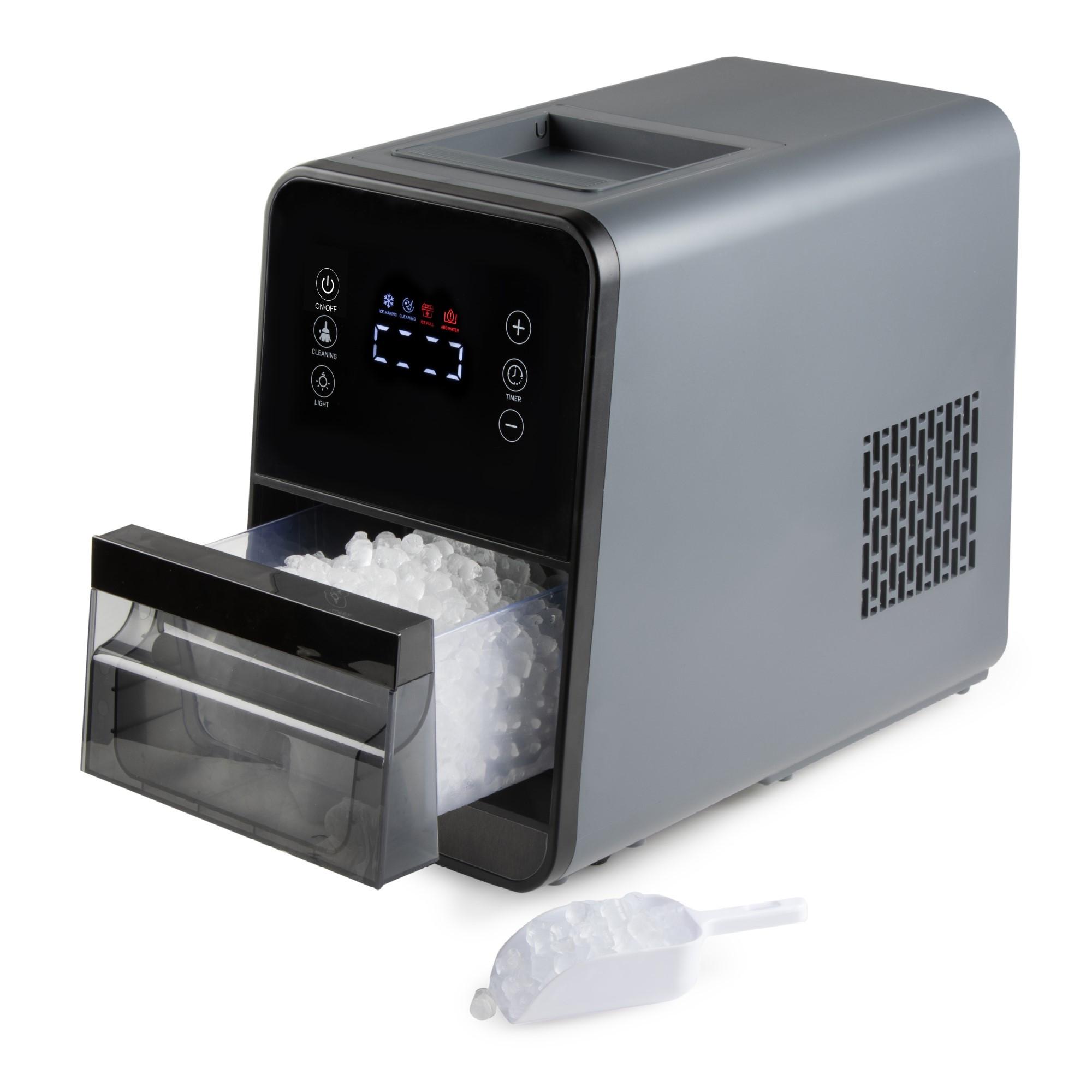 La machine à glaçons DO9286IB de Domo produit en un rien de temps des glaçons rafraîchissants en forme de pépites - idéal pour les boissons fraîches, cocktails ou café glacé.Glaces en forme de pépites/pastilles - refroidit plus rapidement et préserve le goût des boissonsRapide. Production - Premiers glaçons déjà après environ 6 minutesGrande capacité. Capacité - Jusqu'à 15 kg de glace en 24 heuresConvivial - Écran tactile avec indications du niveau d'eau et du bac de récupérationPratique Équipement - fonction d'autonettoyage, éclairage intérieur et fermeture à clé. ouverture de drainageAvec la machine à glaçons DO9286IB, vous profitez de des boissons parfaitement fraîches à tout moment. La glace en pépites convainc par sa forme particulière qui refroidit les boissons plus rapidement et les fondent plus rapidement. Le puissant moteur DC et le système de refroidissement efficace avec R600a garantissent des performances fiables et durables. La machine offre une utilisation intuitive via l'écran tactile et indique quand le réservoir d'eau doit être rempli ou quand le bac de récupération doit être vidé. doit être vidé. Grâce à la fonction d'autonettoyage et au l'ouverture de drainage verrouillable, le nettoyage est particulièrement simple. Parfait pour toutes les cuisines et tous les bars !