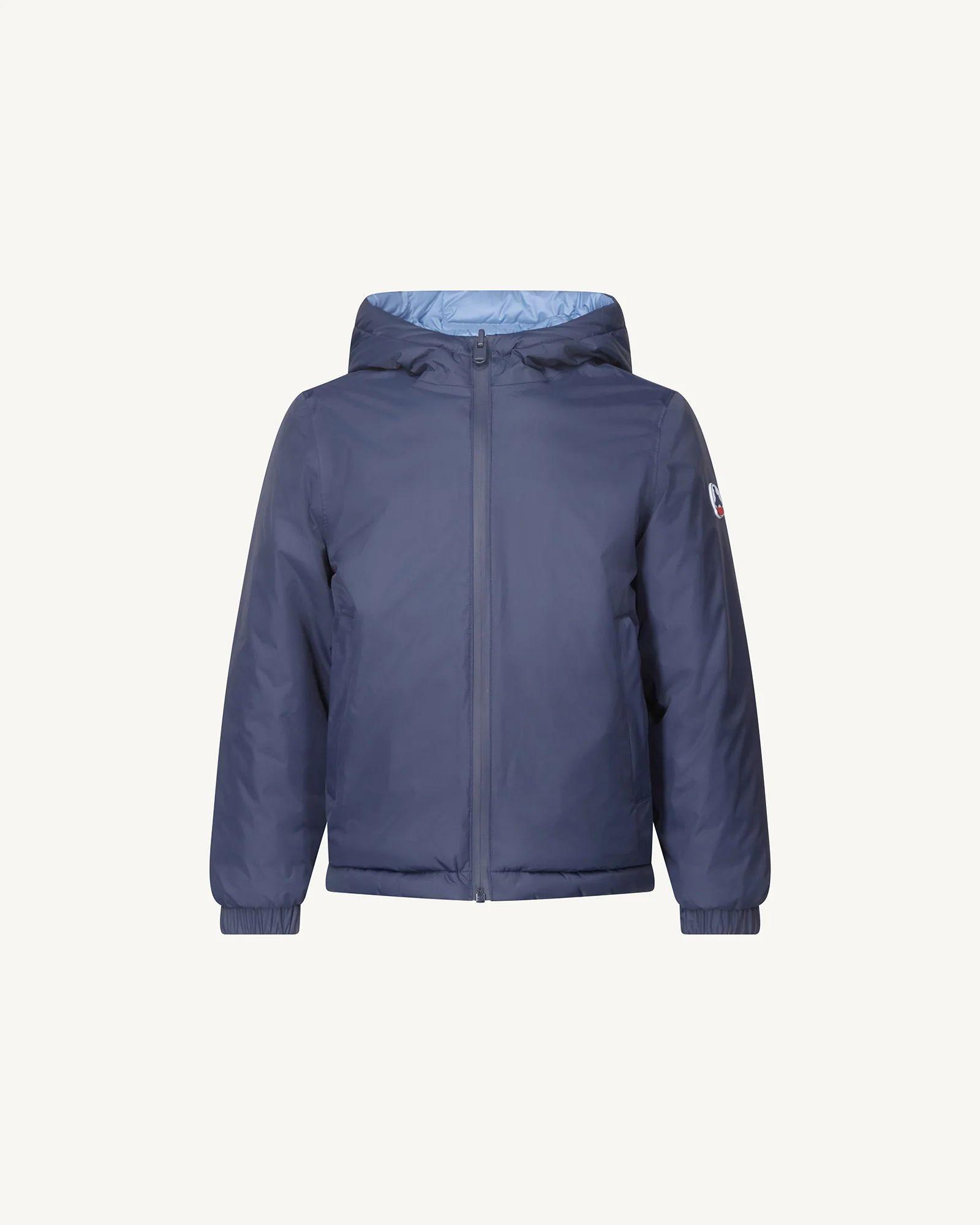 La veste Zurich est équipée d'une fermeture éclair à l'avant et d'un capuchon ajustable pour une protection totale contre le froid. Les manches sont dotées de coudes élastiques pour un ajustement parfait et une chaleur supplémentaire. La doublure en 100% polyamide est légèrement bleue, offrant un contraste agréable avec le tissu extérieur sombre. Un petit logo de la marque Jott apparaît sur la manche gauche, près de l'épaule. La veste Zurich est également dotée de coutures en forme de losanges pour une isolation optimale et une tenue chaleureuse.