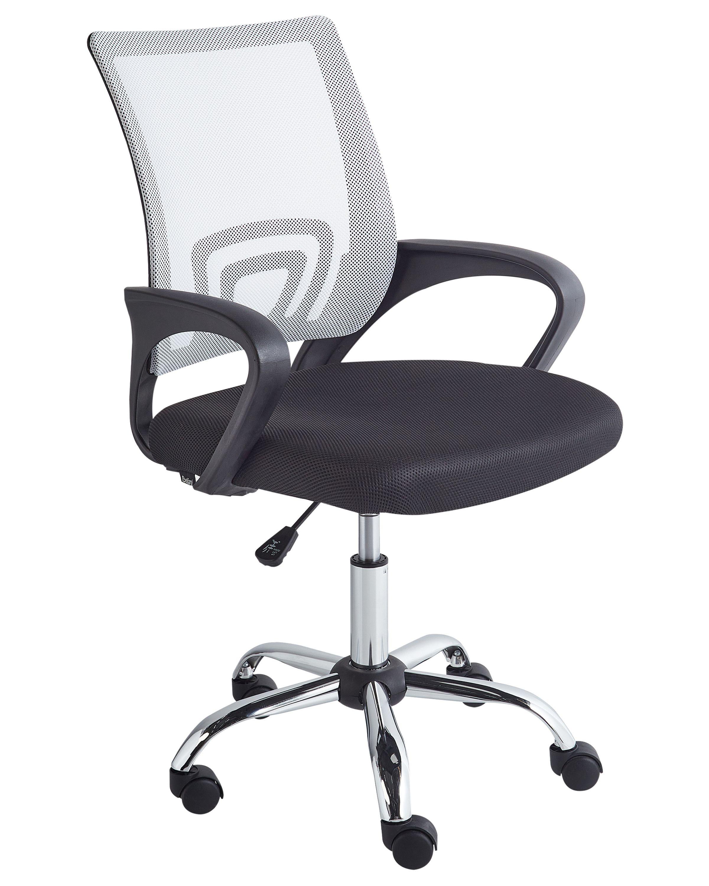 Siège de bureau réglable en maille. Une chaise de bureau qui s'intègre parfaitement à votre bureau à domicile et à la chambre de votre adolescent. Conçue avec un dossier ergonomique, elle favorise une posture correcte, tandis que la maille respirante vous permet de rester au frais et à l'aise, même pendant les journées les plus chaudes. Grâce à un levier pratique situé sous l'assise, vous pouvez régler la hauteur sans effort pour l'adapter à vos besoins. La base pivotante robuste à cinq axes et les roues à roulement doux garantissent une mobilité optimale.