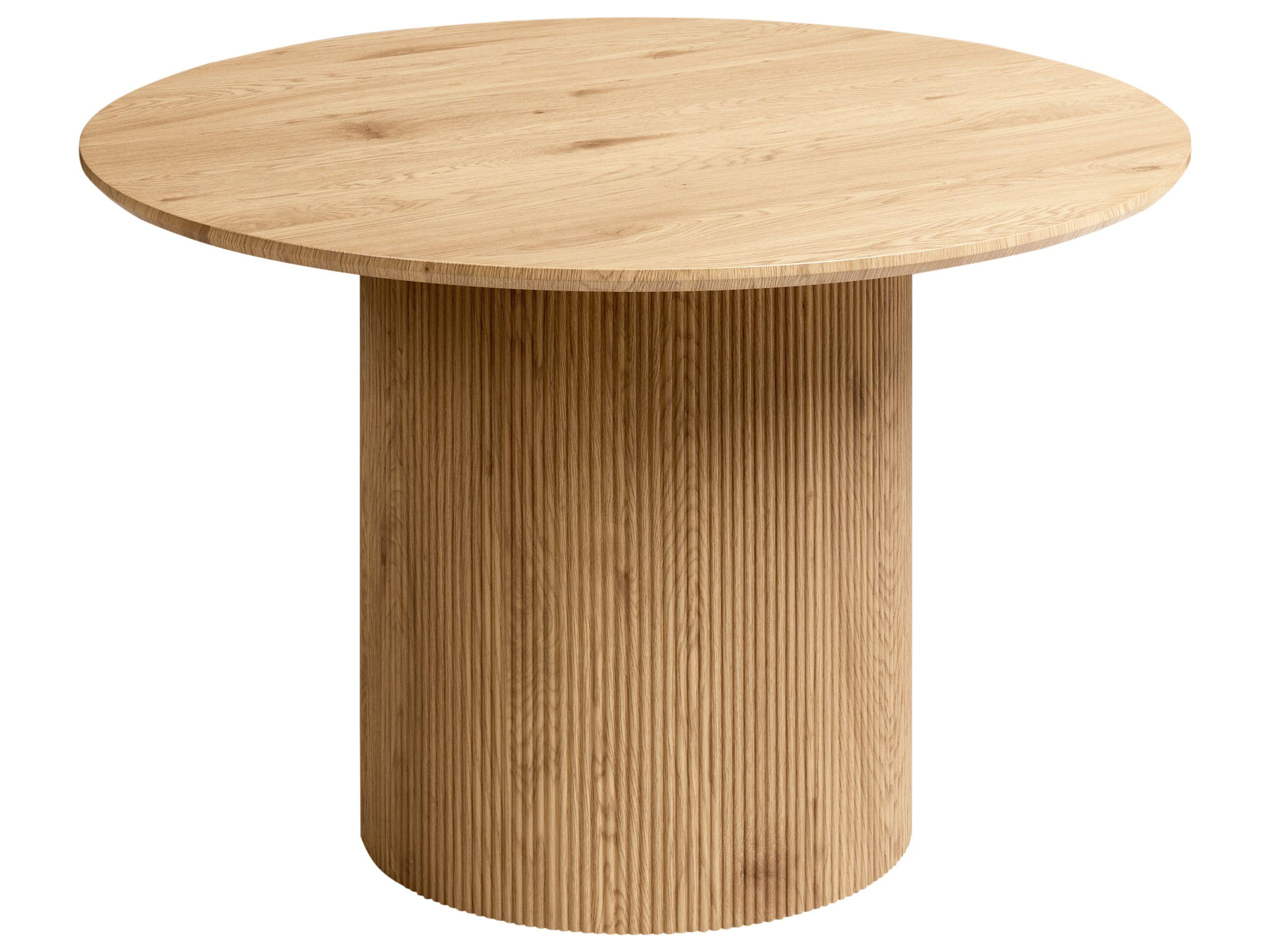Table minimaliste avec socle. Cette table de salle à manger moderne complétera n'importe quelle salle à manger, qu'elle soit grande ou petite. Son élégant piètement à cannelures ajoute une touche de sophistication. Le plateau rond avec une finition en bois crée une atmosphère chaleureuse et accueillante. Parfaite pour les dîners intimes ou les repas décontractés.