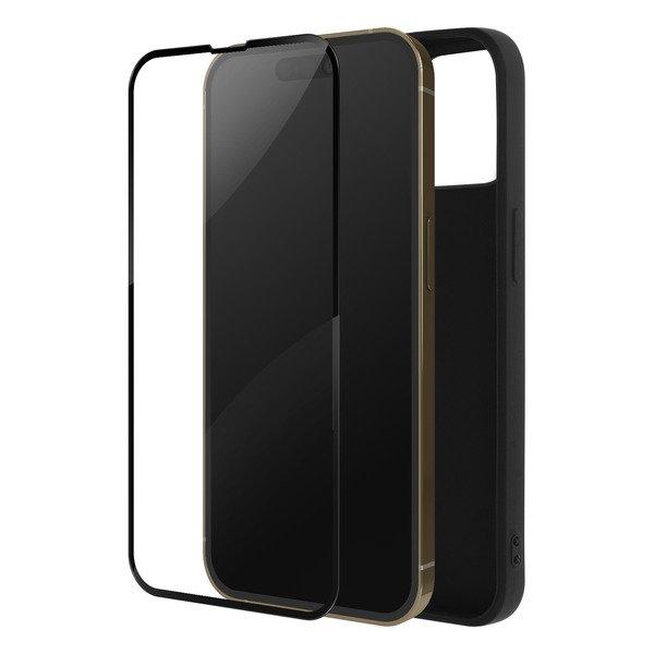 Pack intégrale iPhone 14 Pro. Coque en silicone gel résistant aux chocs et rayures. Bords caméra et écran surélevés. Finition mate Soft-touch et anti-traces. Film écran en verre trempé 9H et anti-traces. Propriétés de l'écran conservées.