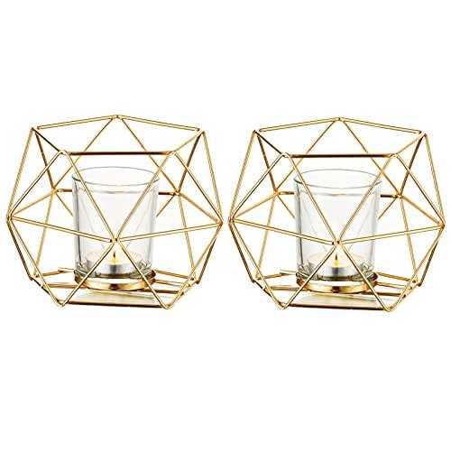 Alopini Photophore Bougeoir Métal - Lot de 2 Photophores Géométriques Pilier Bougie Lanterne Moderne Geo Déco