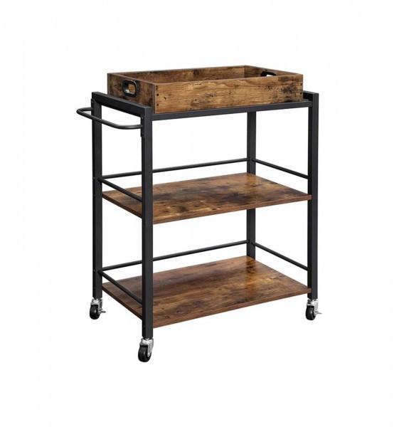 Découvrez le chariot de service SONGMICS, la solution parfaite pour vos besoins en cuisine ! Avec son design industriel élégant en brun vintage et noir raffiné, ce chariot de cuisine est à la fois un assistant pratique et un véritable élément décoratif dans votre intérieur. Que vous organisiez un dîner festif ou que vous profitiez simplement dun petit-déjeuner cosy au lit, ce chariot polyvalent vous offre deux possibilités dutilisation : servez-vous-en comme chariot mobile grâce à ses 4 roulettes universelles, dont 2 avec freins, pour un déplacement facile dans toute la maison, ou transformez-le en étagère de cuisine stable grâce à ses pieds réglables. Un autre point fort est son plateau amovible : avec une capacité de charge allant jusquà 15 kg et ses rebords hauts, il maintient tout en sécurité, idéal pour des petits pains, des snacks ou même une coupe de champagne. Ses trois larges niveaux offrent suffisamment de place pour des entrées, des desserts et tout ce quil faut pour vos réceptions. Sa structure robuste en acier supporte jusquà 60 kg, alliant fonctionnalité et durabilité. Fabriqué à partir de panneaux de particules de haute qualité et dun cadre en acier solide, le chariot de service SONGMICS est le complément idéal pour toute cuisine. Offrez-vous ce compagnon pratique et facilitez-vous le quotidien avec style et efficacité !