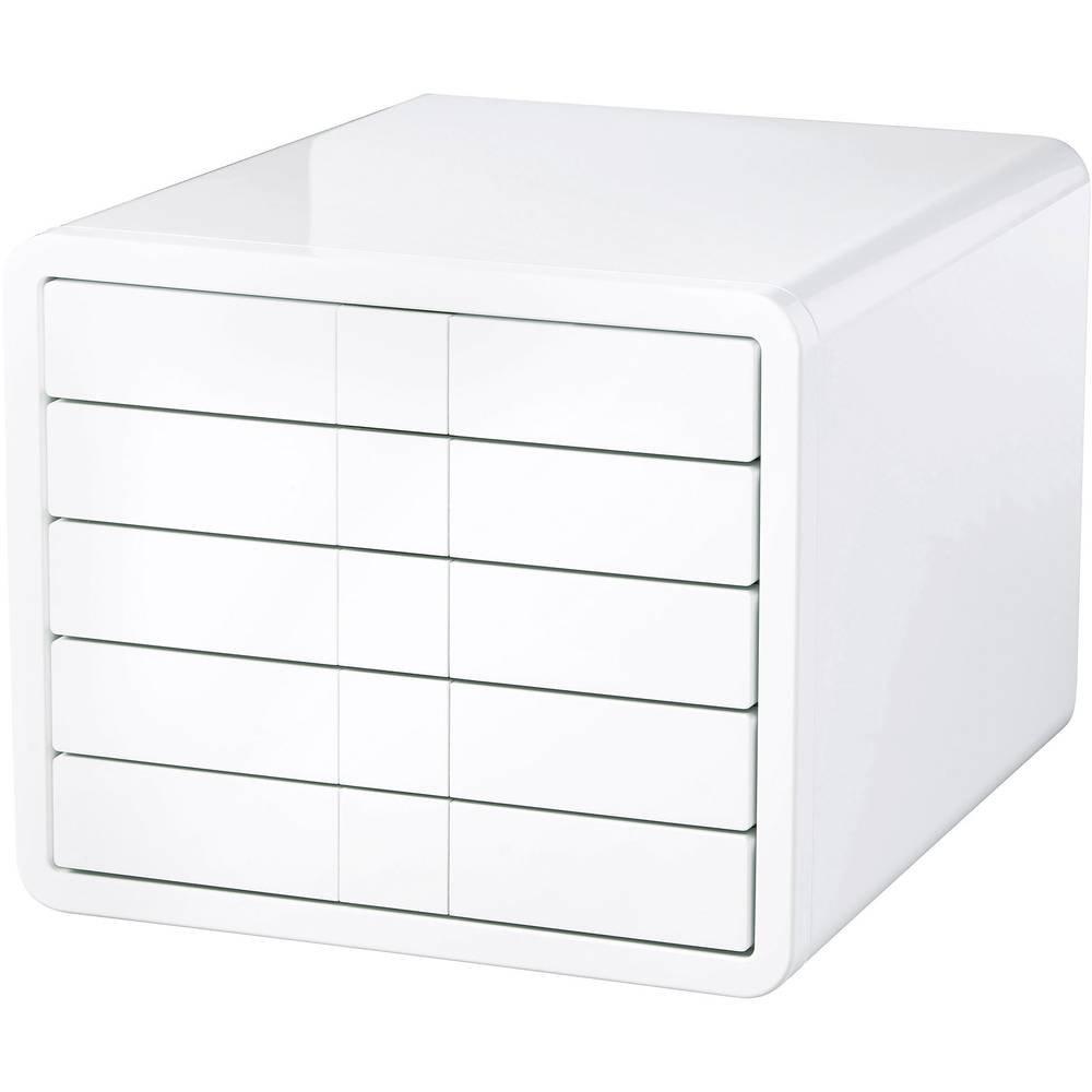 Boîte à tiroirs i-Box avec 5 tiroirs fermés pour formats de papier DIN A4/C4 de qualité supérieure. Design unique, intemporel, élégant et innovant en version ultra-brillante pour les exigences les plus élevées dans un environnement représentatif. Tiroirs ultra-légers avec verrouillage d'extraction et trou de préhension pour un retrait confortable. Nouveau concept d'étiquetage breveté avec une mécanique innovante à clip. Avec étiquettes d'inscription. Fabriqué en Allemagne. Dimensions extérieures (L x P x H) : 295 x 355 x 247 mm. Dimensions intérieures des tiroirs (L x P x H) : 244 x 325 x 33 mm. Matériau : plastique (ABS). Couleur du boîtier : blanc. Couleur des tiroirs : blanc.