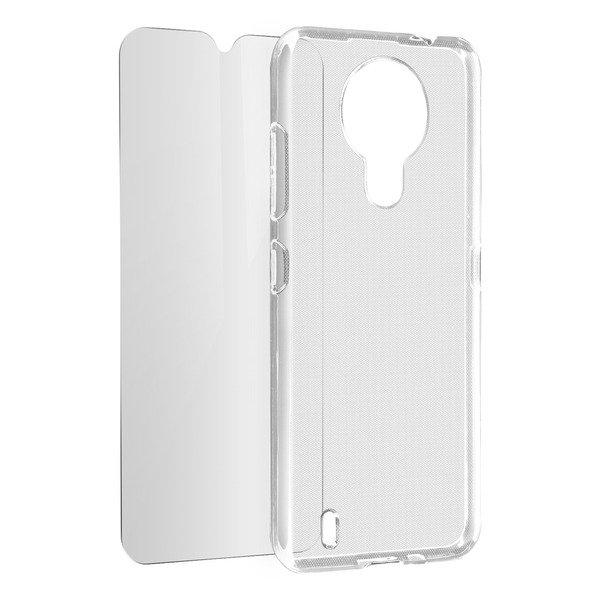 Pack protection Nokia 1.4. Coque transparente en silicone souple qui protège des chocs et rayures, tout en laissant le design du mobile visible. Film écran en verre trempé 9H ultra-résistant. Fonctionnalités accessibles.