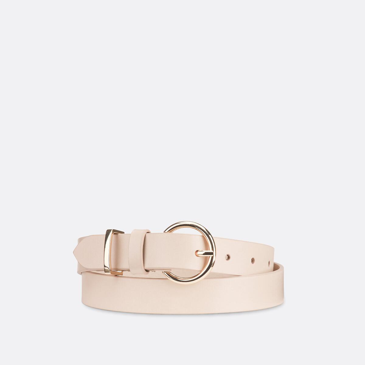 Cette ceinture présente un design classique avec une boucle dorée, offrant un accessoire polyvalent pour diverses tenues. Son esthétique simple mais élégante la rend adaptée aux occasions décontractées comme aux plus habillées.