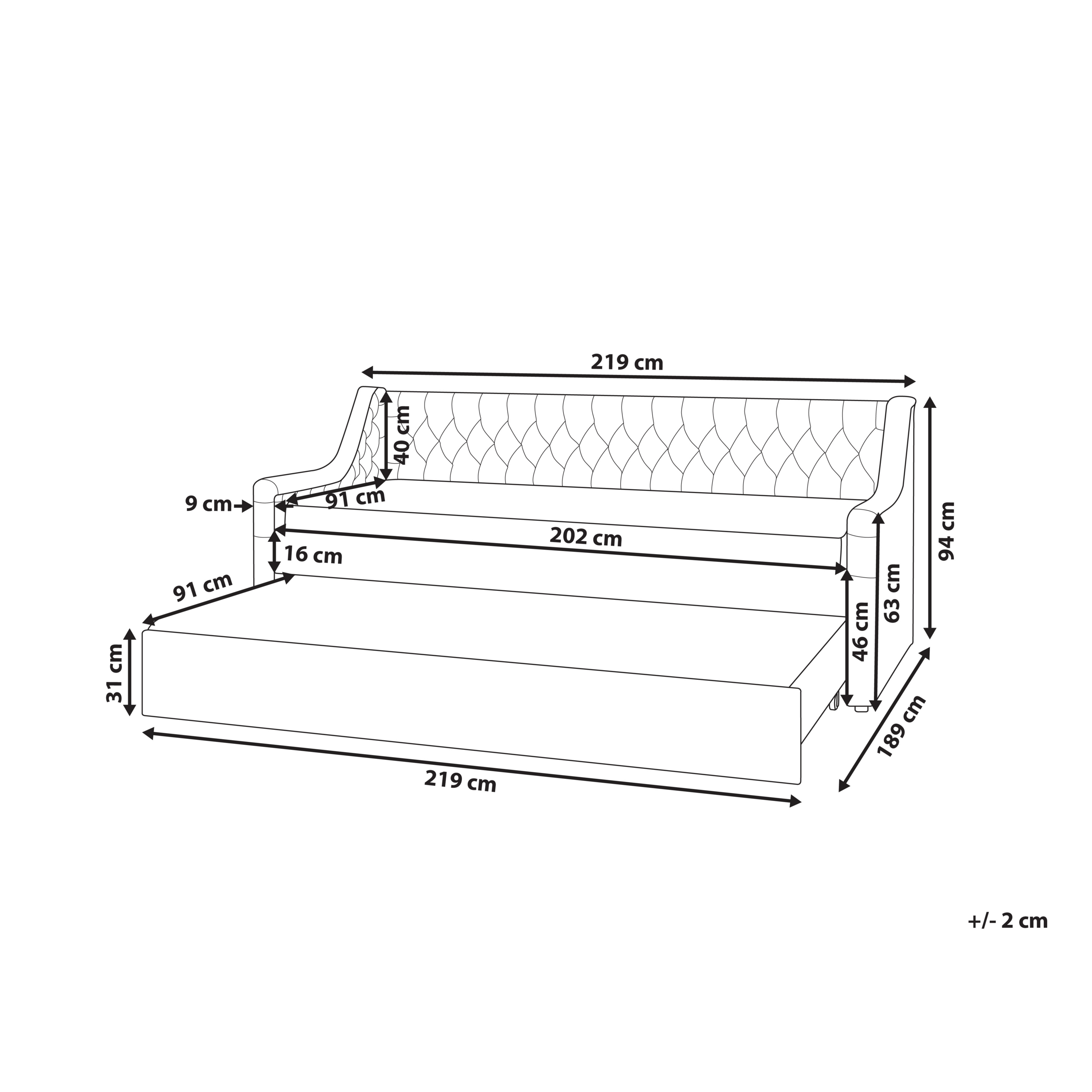 Loffre inclue:</b> 2 x Sommier à lattes (Nombre de lattes : 24), 1 x Cadre de lit, Non inclus : matelas et parure de lit<br> <br><b>Caractéristiques clés:</b> Si nécessaire, vous pouvez tout simplement déployer le deuxième lit, Solution parfaite pour la chambre et le salon, Style classique, Capitonnage décoratif classique, Rembourrage de qualité supérieure<br> <br><b>Informations dassemblage: À assembler entièrement. 20 - 40 min