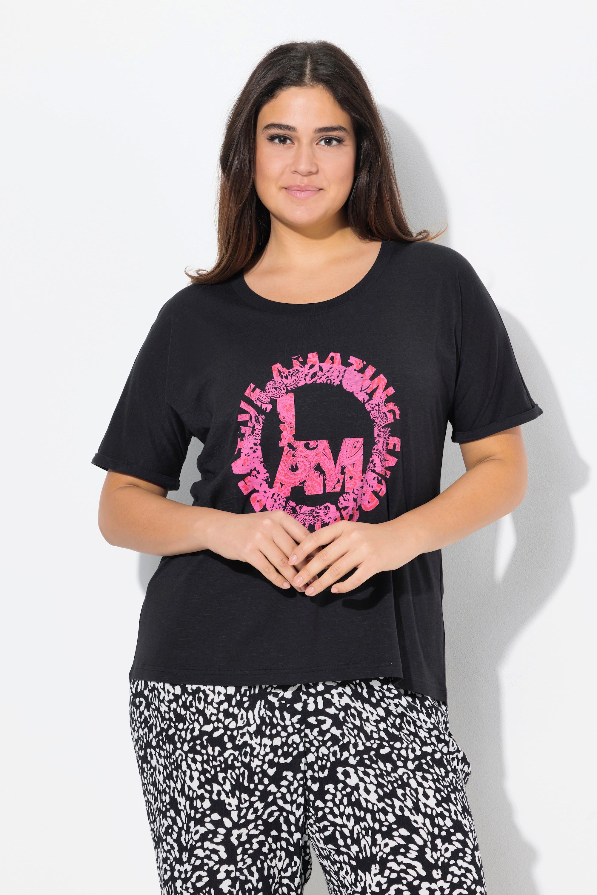 Ulla Popken T-shirt oversize col rond manches courtes motif rond