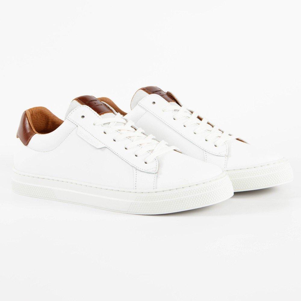 La basket Spark Clay présente un design minimaliste, confectionnée en cuir blanc lisse avec des empiècements contrastants en cuir « ciclon », réputé pour sa patine unique qui se développe avec le temps.
