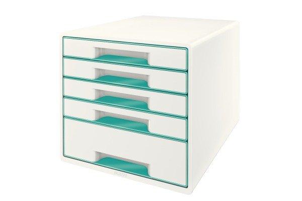 Leitz, LEITZ Schubladenbox WOW Cube A4 52142051 weiss/eisblau, 5 Schubladen