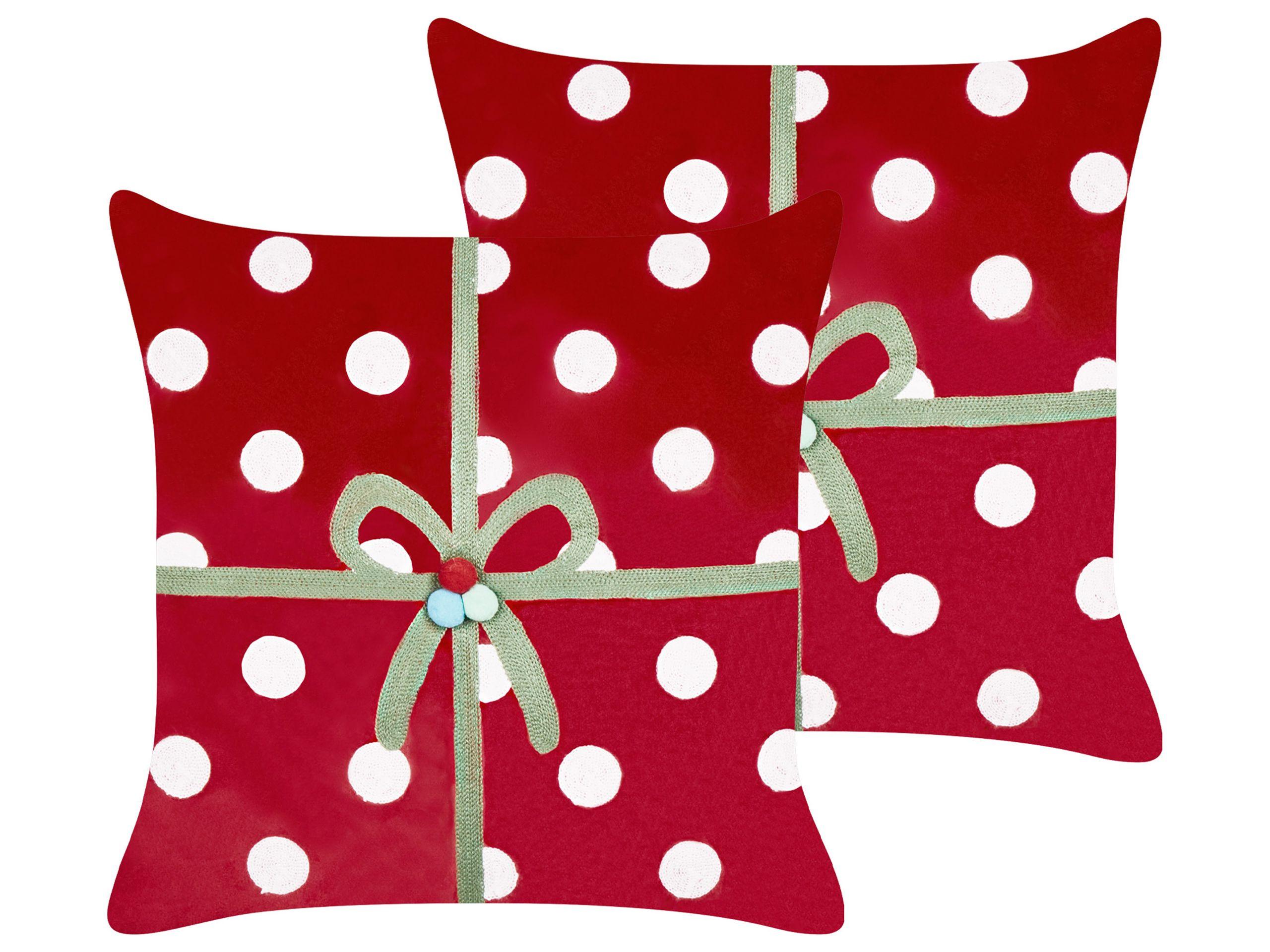 Taies d'oreiller avec motif de cadeau de Noël. Cet ensemble de deux coussins décoratifs allie charme festif et élégance intemporelle. Les housses en velours rouge riche présentent un motif brodé ressemblant à un cadeau emballé, parfait pour les fêtes de fin d'année. Remplis d'inserts doux et moelleux, ils offrent à la fois confort et style. Les housses déhoussables, dotées de fermetures éclair dissimulées, facilitent le nettoyage et garantissent que ces coussins resteront un ajout esthétique et pratique à votre décor de Noël.