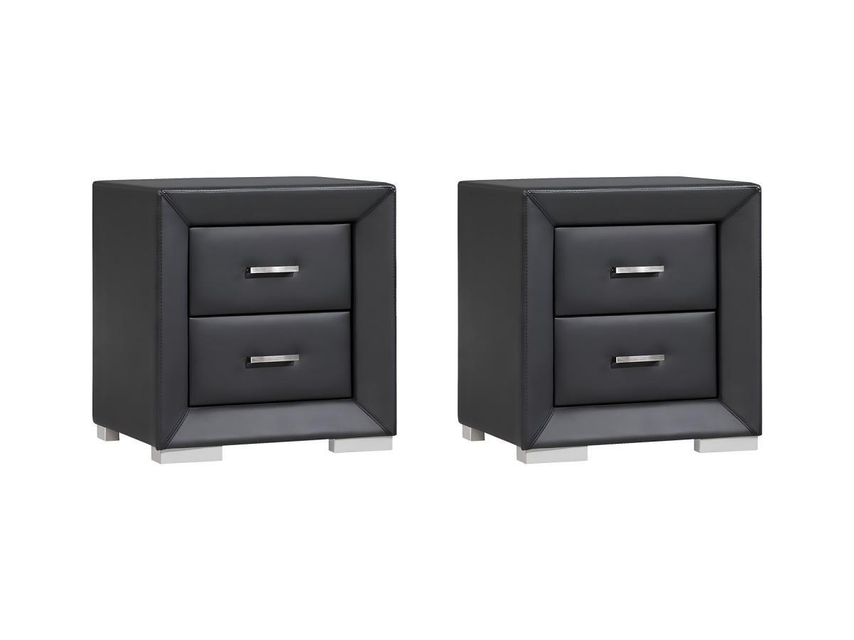 Vente-unique, Lot de 2 tables de chevet - 2 tiroirs - Simili noir - CAPITOLE