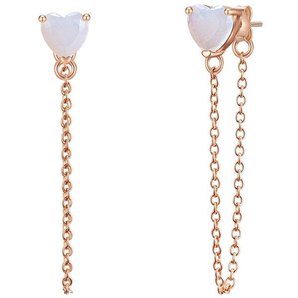 Préférez-vous les boucles d'oreilles spéciales, mais élégantes et avec un soupçon de romance? Ensuite, ces boucles d'oreilles enchanteresses de l'étiquette Glimming Munich gagnent une place d'honneur dans votre boîte à bijoux. Le motif cardiaque est connecté à une chaîne en filigrane qui se termine sur le connecteur de fermeture. Ainsi, la chaîne pend doucement sur votre lobe d'oreille en forme de U décontractée. Fabriqué en argent sterling 925 et raffiné avec de l'or rose féminin, la pierre de lune chatoyante donne aux bouchons du cœur une touche exclusive. Un incontournable pour tous les romantiques et aussi un merveilleux cadeau pour les fashionistas!