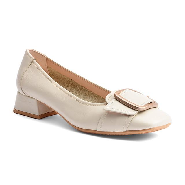 Les détails de l'escarpin en cuir sont soigneusement travaillés, avec des coutures visibles qui ajoutent une touche de style. Le talon mesure 30 mm, ce qui est suffisamment bas pour être porté en toute confiance, mais suffisamment haut pour donner un peu d'élégance. La couleur écru est idéale pour une tenue chic et élégante.