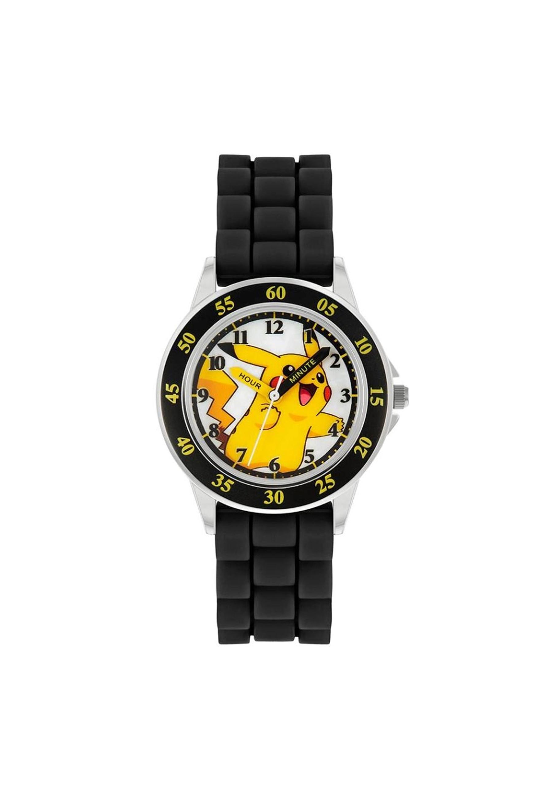Montre Disney Pikachu Kids avec bracelet en silicone noir et cadran Pikachu avec aiguilles pour les maîtres du temps, chiffres faciles à régler et détail de la lunette.