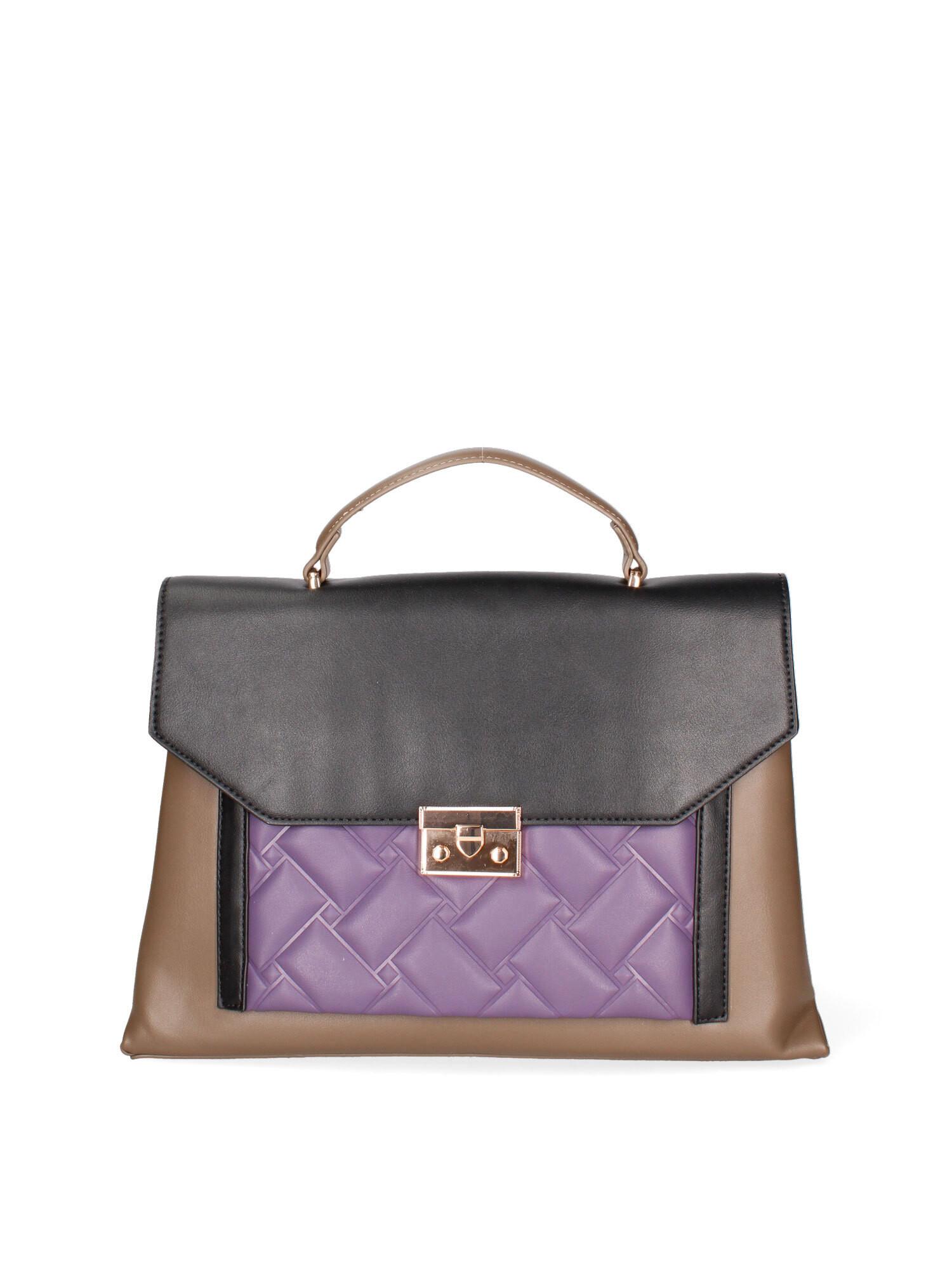 Ce sac à main présente un design sophistiqué avec une fermeture à rabat et un motif matelassé distinctif sur le devant. Il est équipé d'une poignée supérieure pour un transport facile et d'une fermeture à fermoir sécurisée. Le sac comprend une poche intérieure zippée, deux poches intérieures ouvertes et une poche extérieure zippée à l'arrière pour un rangement organisé. Une bandoulière amovible en similicuir offre des options de transport polyvalentes.