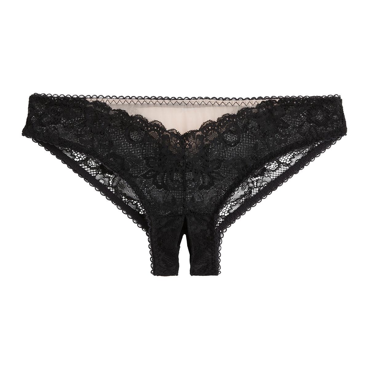 Ce string présente de délicats détails en dentelle et un design fendu ludique. Le motif en dentelle complexe ajoute une touche d'élégance, tandis que les bords festonnés offrent une finition raffinée. Le design allie confort et esthétique sophistiquée.