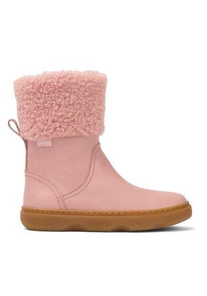 Bottes en cuir rose pour enfant avec de la fourrure en PET recyclé, une semelle intérieure amovible OrthoLite® et une semelle extérieure 100 % caoutchouc (20 % recyclé).