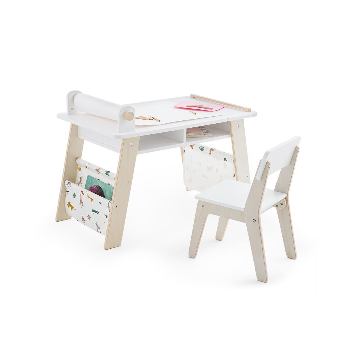 Adapté à la taille des tout petits, cet ensemble table et chaise Junglito, en MDF et peuplier massif certifiés FSC®, permet de créer un espace confortable pour jouer et dessiner.