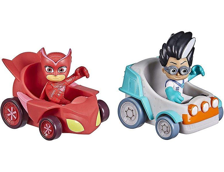 Das Fahrzeugset mit Owlette und Romeo enthält zwei Mini-Vehicles sowie zwei bewegliche Action-Figuren. Kinder können spannende Rennen zwischen Owlette in ihrem Eulengleiter und Romeo in seinem Labor-Fahrzeug veranstalten. Mit einer Höhe von 7,5 cm sind die Figuren ideal, um Lieblingsszenen nachzustellen oder neue Abenteuer zu erfinden. Die Fahrzeuge sind eine perfekte Ergänzung zu weiteren Spielsets der Serie.