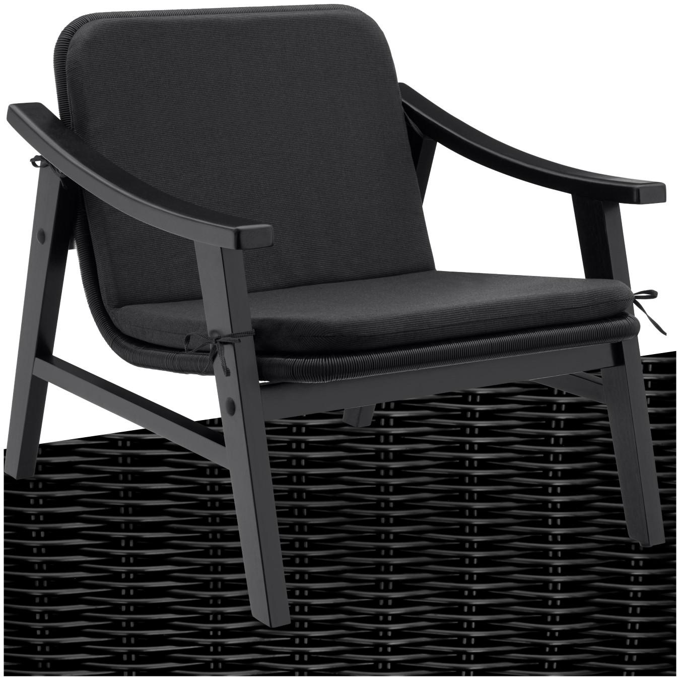 Des accoudoirs larges et le rembourrage d'assise et de dossier, parfaitementmaintenu en place par quatre cordes, créent un maximum de confort et invitent à la détente. La housse déperlante en polyester est équipée de deux fermetures éclair et est donc amovible et lavable, ce qui la rend particulièrement facile d’entretien.