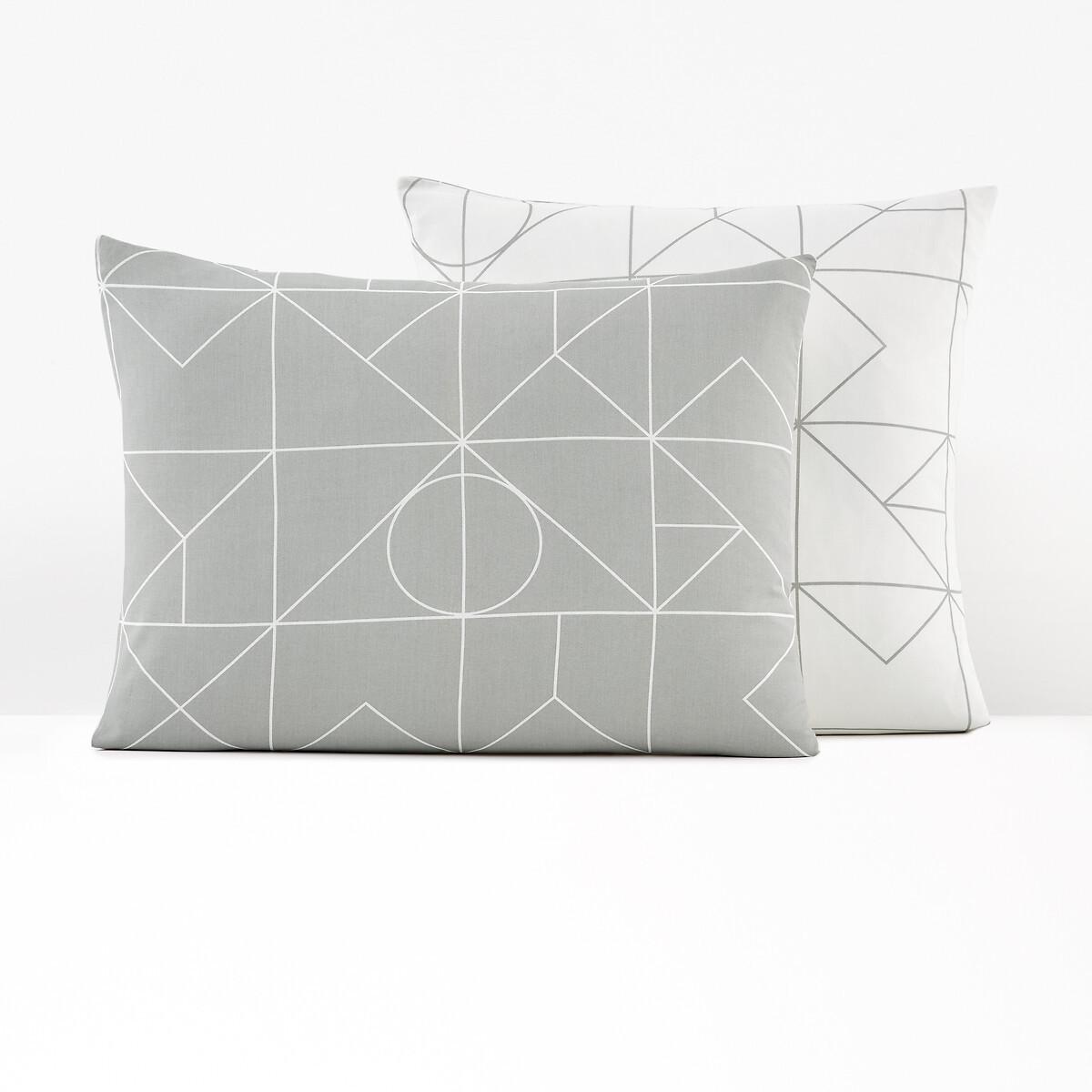 - Taies d'oreiller réversibles : recto imprimé motifs blancs sur fond gris, verso motifs gris sur fond blanc