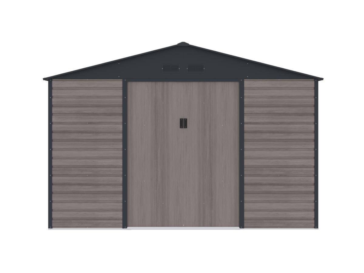 Vente-unique Abri de jardin métal en acier galvanisé effet bois gris 10,98 m² - ADELMO
