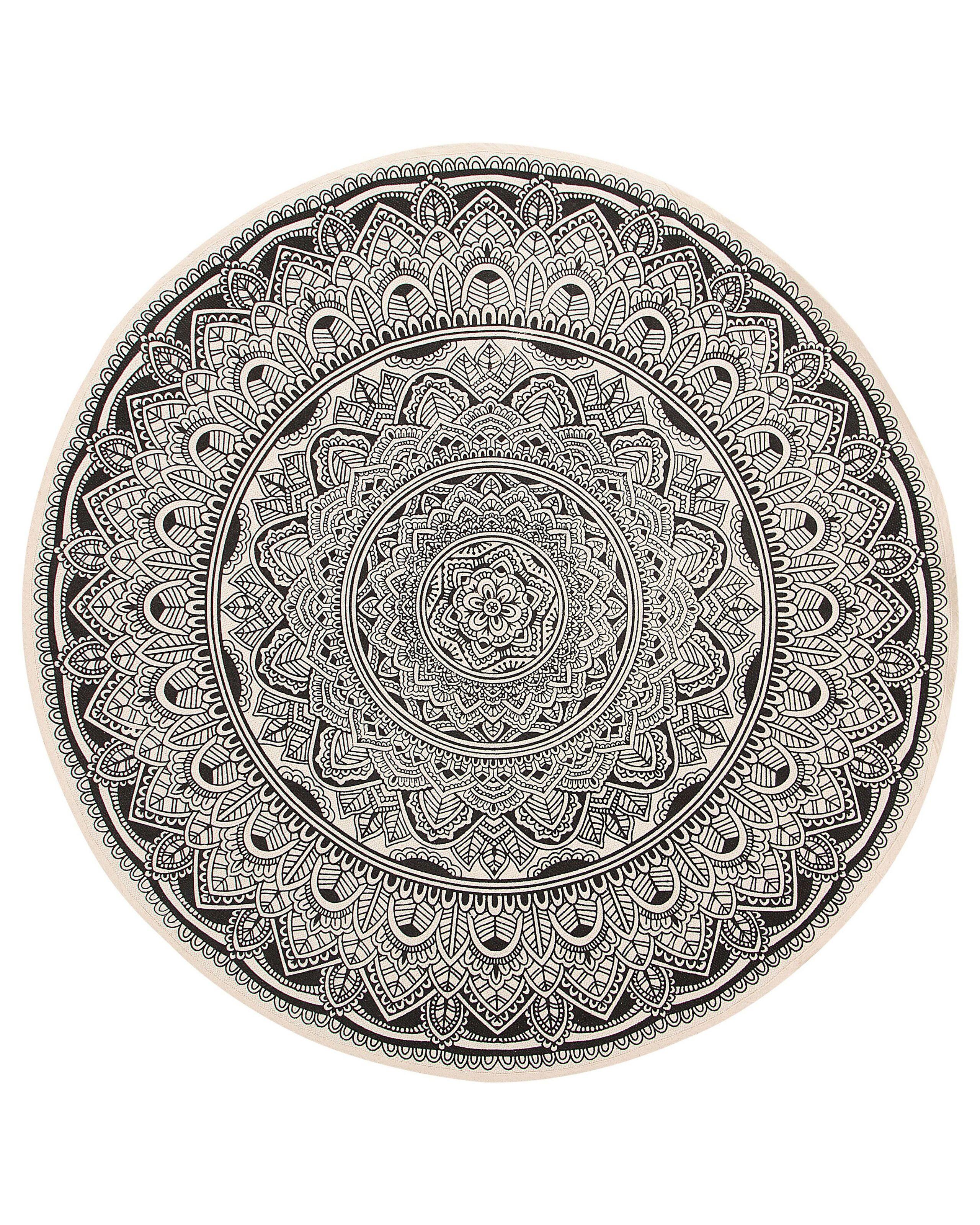 Tapis au style boho fait à la main en coton naturel . D'inspiration boho, ce beau tapis rond embellira chaque intérieur. L'imprimé décoratif en noir sur une base de couleur blanc crème crée une composition intéressante destinée à attirer l'attention et à améliorer l'apparence de l'environnement le plus proche. Ce tapis original et unique en son genre est fait à la main à partir de coton naturel à la fois doux et résistant.