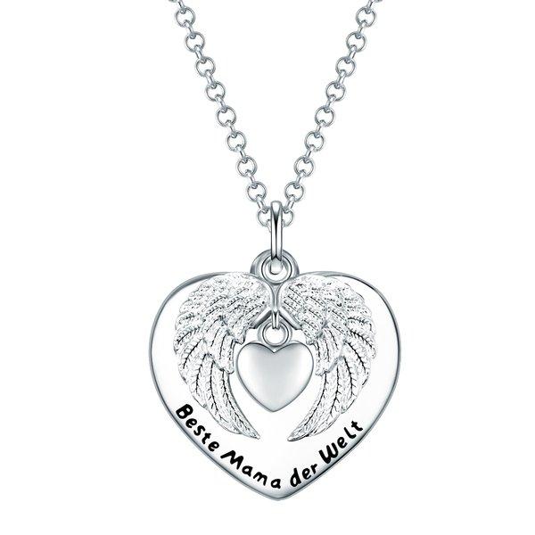 Rafaela Donata, Femme Collier tendance Coeur avec ailes + citation "Beste Mama"