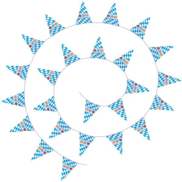 La guirlande avec motif losanges bleus et blancs et symboles donne un vrai air de fête de la bière à votre évènement. Cette décoration légère et stable aux couleurs de la Bavière est super rapide à installer. Les jolis grands fanions sont coupés à plat et cousus en haut. Toute la guirlande est fabriquée en matériau résistant aux intempéries et convient parfaitement à un évènement en plein air, matériau : 100 % polyester.