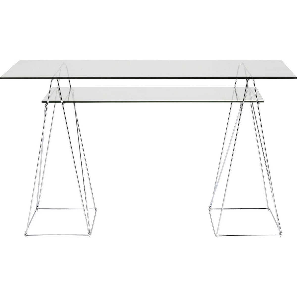 Ici, le travail devient un passe-temps stimulant. Avec son aspect élégant, le bureau Polar donne plus de dynamisme et d'énergie pour effectuer le travail de bureau dans le bureau à domicile. Mais grâce à son design léger et moderne, il s'intègre aussi harmonieusement dans le salon. Le plateau de 130 x 65 cm en verre de sécurité est complété par un autre plateau au niveau inférieur et offre de la place pour l'ordinateur portable, les documents et les ustensiles.Table Polar Chrom 8 mm ESGEyecatcher pour le bureau à domicile : bureau en verre avec piétement chromé filigraneParfaitement organisé : Deux plateaux en verre superposés offrent de la place pour travailler, ranger et maintenir l'ordre.Verre et chrome : les matériaux clairs, faciles à entretenir et intemporels s'accordent idéalement avec un style d'aménagement minimaliste et moderne.Aspect filigrane : deux supports en acier à la construction raffinée servent de support aux plateaux en verre transparent.La sécurité d'abord : Le solide verre de sécurité ESG de 8 mm d'épaisseur se caractérise par une résistance particulière aux chocs et aux coups.Information produit Tube en acier chromé, verre de sécurité, transparent, 8 mm, diamètre du tube : 8mm 920 Glasset 130x65 100x45cm ESG 8 mm, 922 Piètement, support de verre 47,5cm, étagère intermédiaire 45,8cm