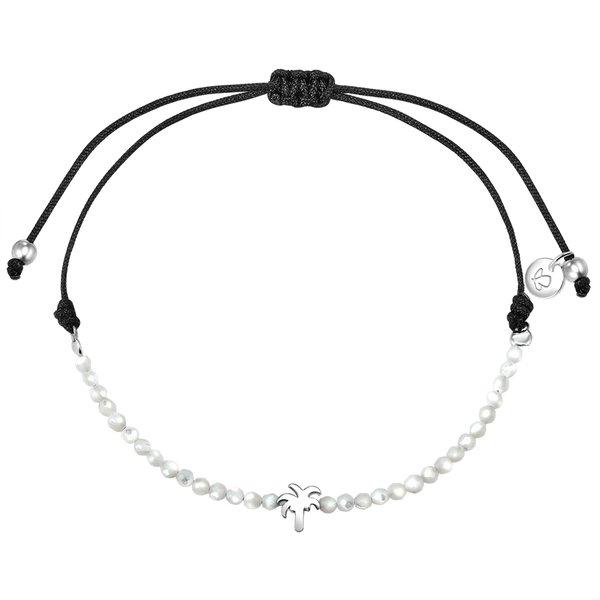 Vous aimez les accessoires avec une sensation de sonnerie exotique? Ensuite, vous serez ravi de ce bracelet de l'étiquette met en évidence Munich dans les Caraïbes branchées Chic! Une petite paume très polie de l'argent sterling se combine à des perles de coque chatoyantes à un mélange de matériau féminin, aligné sur une sangle textile douce. La combinaison convaincue non seulement comme accessoire d'été, mais aussi pour rappeler de belles vacances ensemble. Pratiquement, l'inconvénient est avec des nœuds coulissants, de sorte que vous superviennent simplement le bracelet et personnaliser rapidement la longueur à votre poignet.