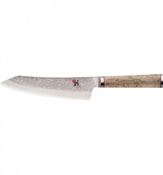 Les couteaux de la série Miyabi 5000MCD sont des outils de précision pour le chef amateur et professionnel ambitieux, qui sont parfaits en fonction et en ergonomie et absolument uniques dans leur conception. Lame Cryodur de haute qualité (63 HRC) avec un noyau dur en acier en poudre MicroCarbide MC 63, entouré de 100 couches de deux types d'acier différents de dureté différente. Motif damassé de fleurs individuelles, tranchant katana et lame aiguisée double face avec gâchette Honbazuke ultra-tranchante comme symbole de l'art du couteau le plus magistral. Manche fait du meilleur bouleau de Mazurie avec une épingle en mosaïque et un embout décoratif.