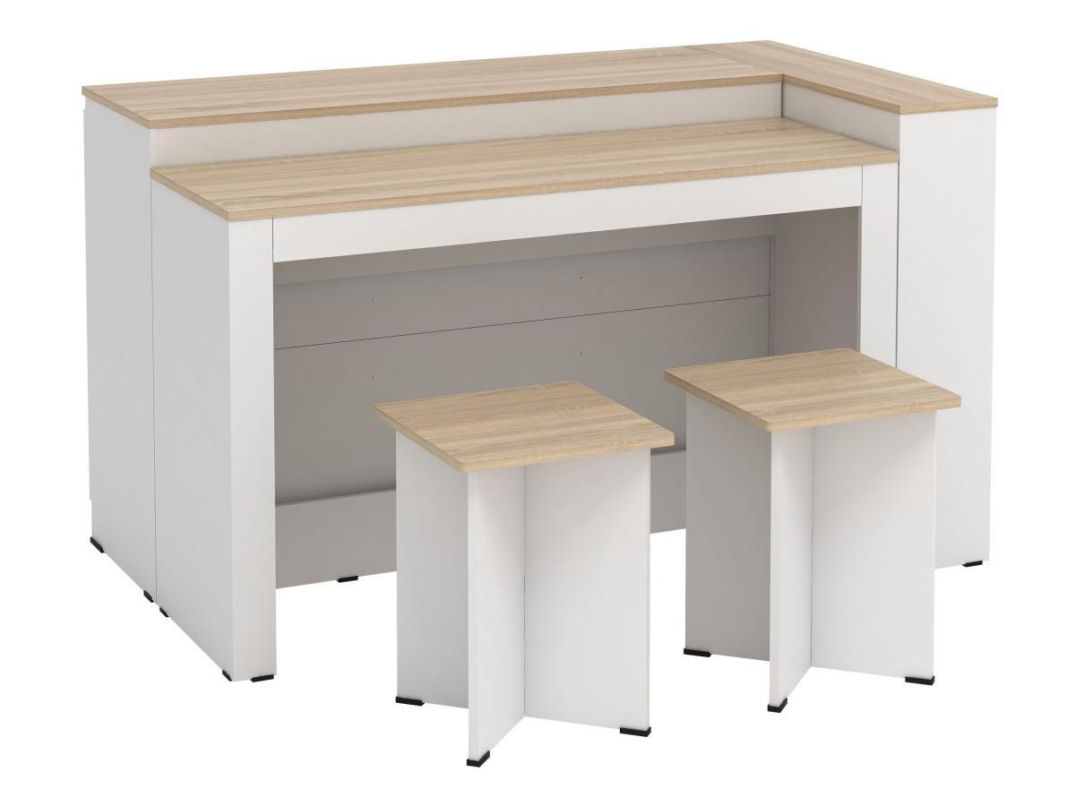 Vente-unique Ensemble îlot central de cuisine + 2 tabourets - Blanc et Naturel clair - NUSICE