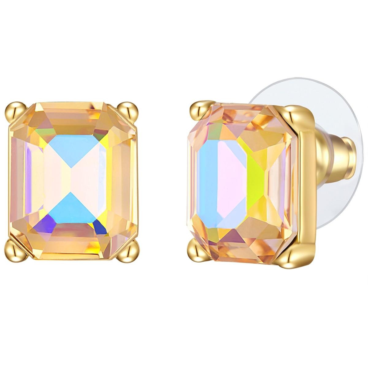 Vous recherchez un accessoire spécial mais abordable ? Ces boucles d'oreilles clous de la jeune marque tendance YOKOAMii raviront toutes les amatrices de bijoux avec leur mélange de matières contemporain et allient un design « avant-gardiste » à une pincée de glamour. Un grand cristal de verre taillé en forme de cube capte la lumière et évoque un éclat à couper le souffle sur votre lobe d'oreille. Le résultat est un bijou qui s'accorde aussi bien avec un jean décontracté qu'avec des looks festifs. La boucle et les montures sont en laiton plaqué or jaune et forment un contraste passionnant avec le cristal de verre scintillant et cool.
