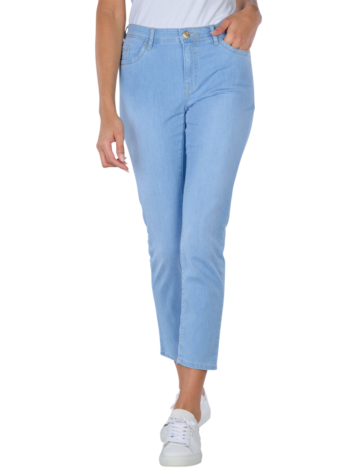 Le jean Mary S Cropped Slim Straight Fit offre une coupe confortable avec une taille haute. Fabriqué dans un matériau fin et extensible, ce jean bleu clair à la mode est agréable à porter. Le style classique à cinq poches et la fermeture éclair pratique apportent fonctionnalité et élégance. Le délavage clair crée un look frais, idéal pour les tenues décontractées. Ce produit est certifié BLUE PLANET, respectant ainsi les normes environnementales.