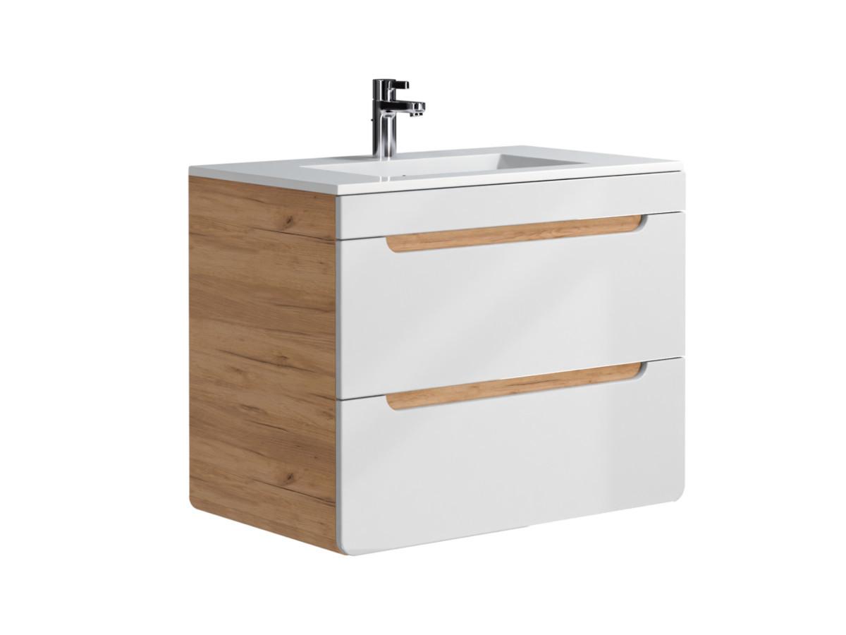 Vente-unique, Meuble de salle de bain suspendu avec vasque à encastrer - Coloris naturel et blanc - 80 cm - ARUBA
