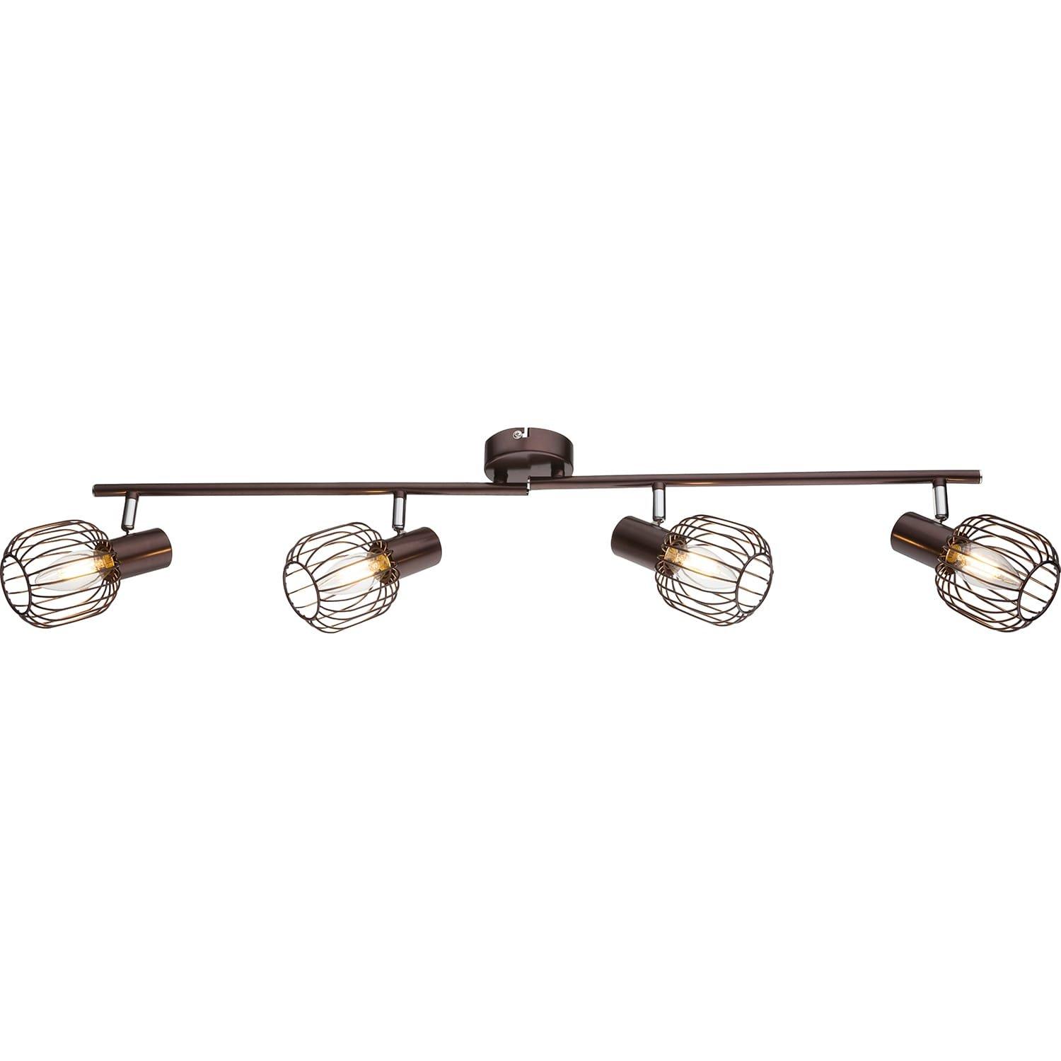 Un design élégant et la possibilité de monter ce projecteur rapidement et facilement ne sont que quelques-unes des caractéristiques qui décrivent cet article. Il peut être placé presque n'importe où et laisse votre maison briller sous une nouvelle lumière brillante. Les composants chromés s'harmonisent parfaitement avec la couleur marron et bronze de ce spot et les spots mobiles permettent un éclairage parfait dans chaque pièce. Avec les quatre douilles E14, nous vous laissons le choix de la bonne source de lumière (max. 40W).