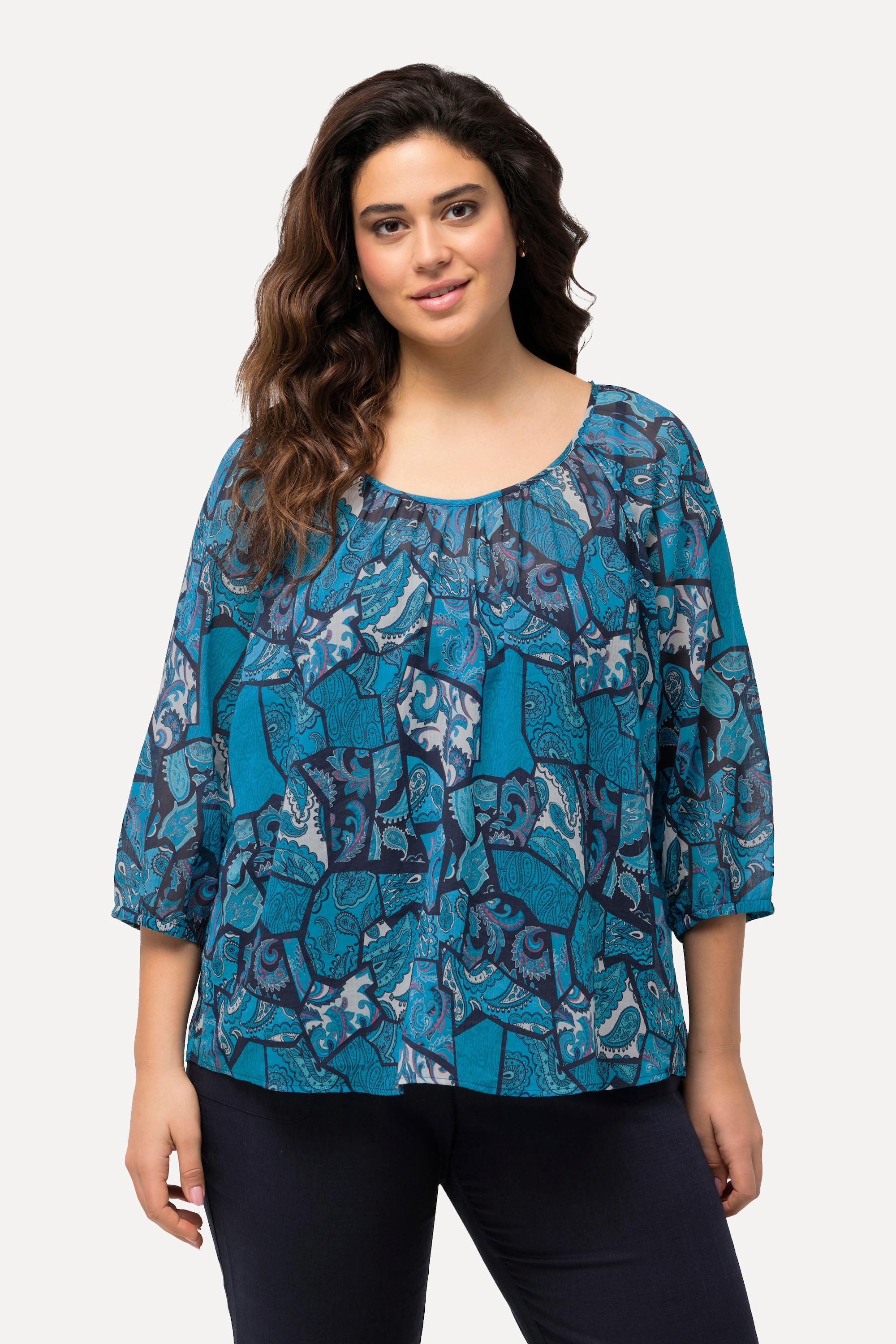 Ulla Popken Blouse Imprimé Floral Col Rond Cordon au Dos