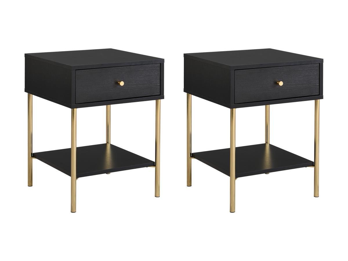 PASCAL MORABITO, Lot de 2 tables de chevet 1 tiroir - MDF et métal - Noir et doré - MILAVIA de Pascal Morabito