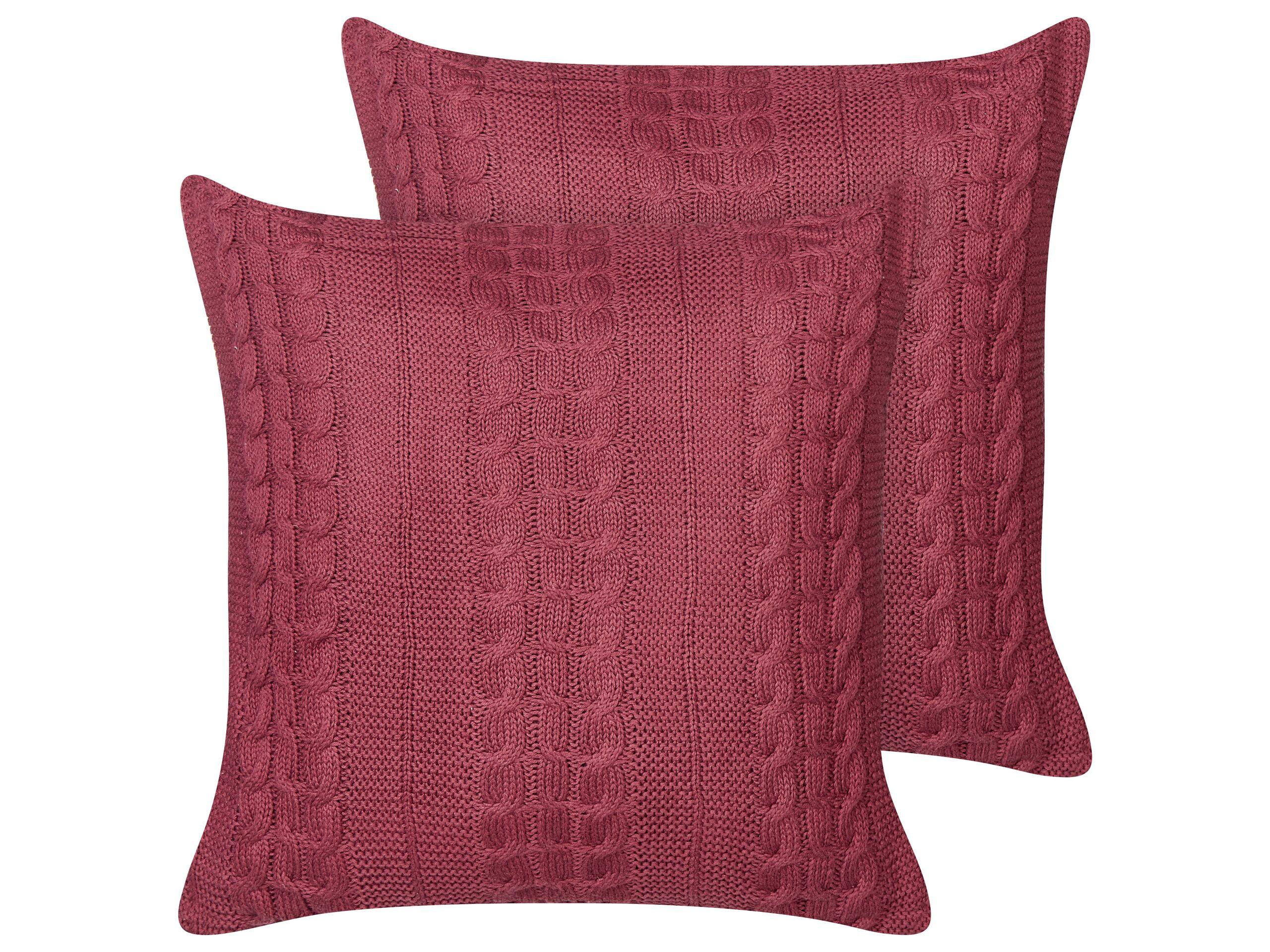 Ensemble de 2 coussins bordeaux. Donnez un coup de jeune à votre décoration intérieure grâce à ces deux jolis coussins. Leur teinte bordeaux riche et chaude vous incitera à vous asseoir et à vous détendre un moment. Les coussins sont dotés d'un rembourrage moelleux et d'une housse tricotée à la main avec un motif tressé sur le devant.