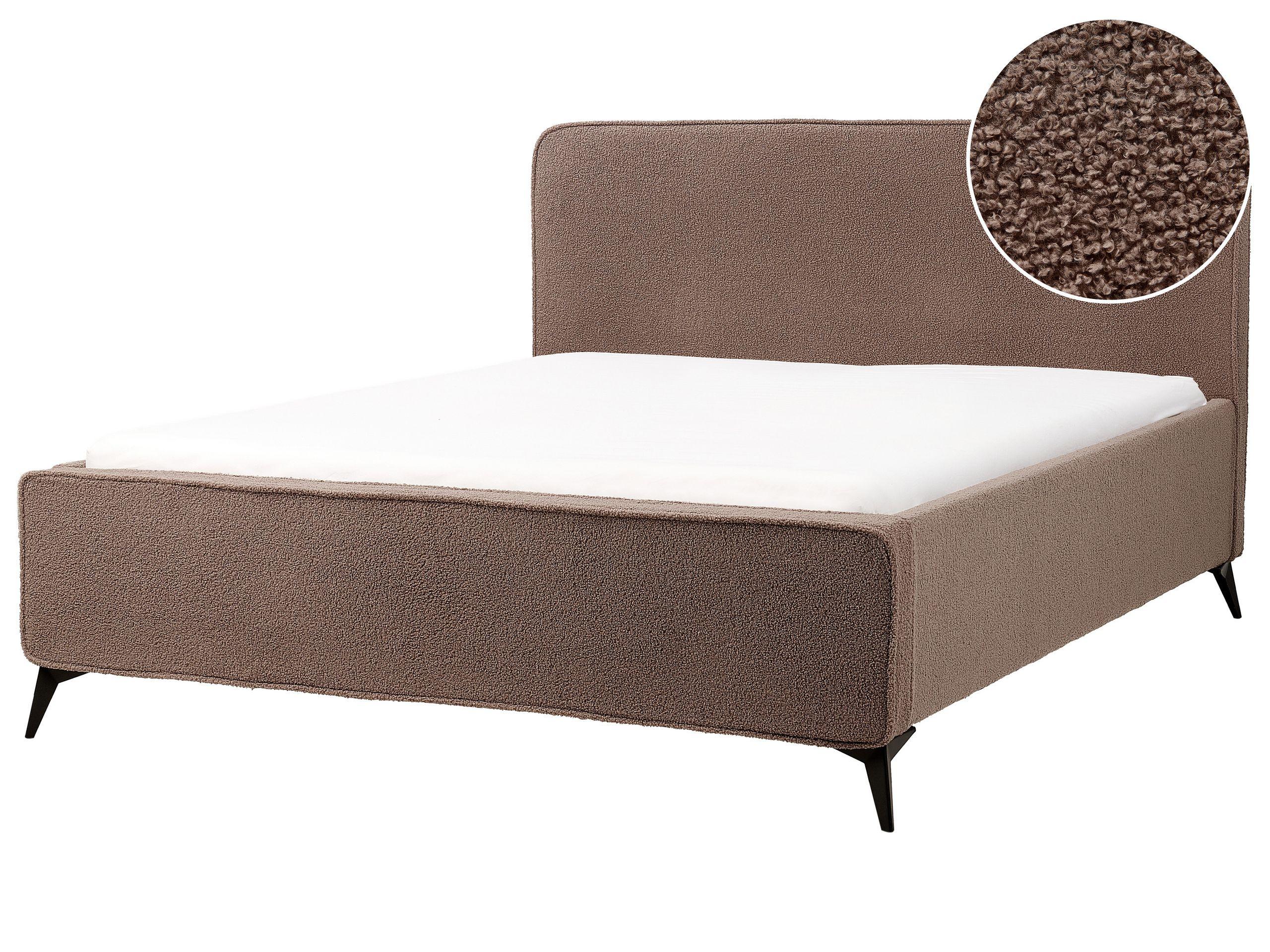 Beliani Lit avec sommier en Bouclé Traditionnel VALOGNES