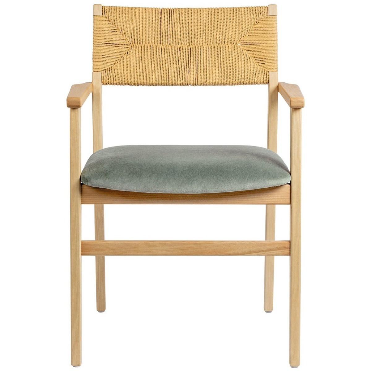 Blanc d'Ivoire, Chaise avec accoudoirs Paloma frêne blond velours vert patine