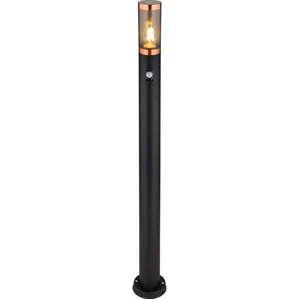 Lampe d'extérieur en acier inoxydable noir, cuivre, plastique fumé, capteur inclus, IP44, : 127mm, H: 1100mm, exclu 1x E27 30W 230V.